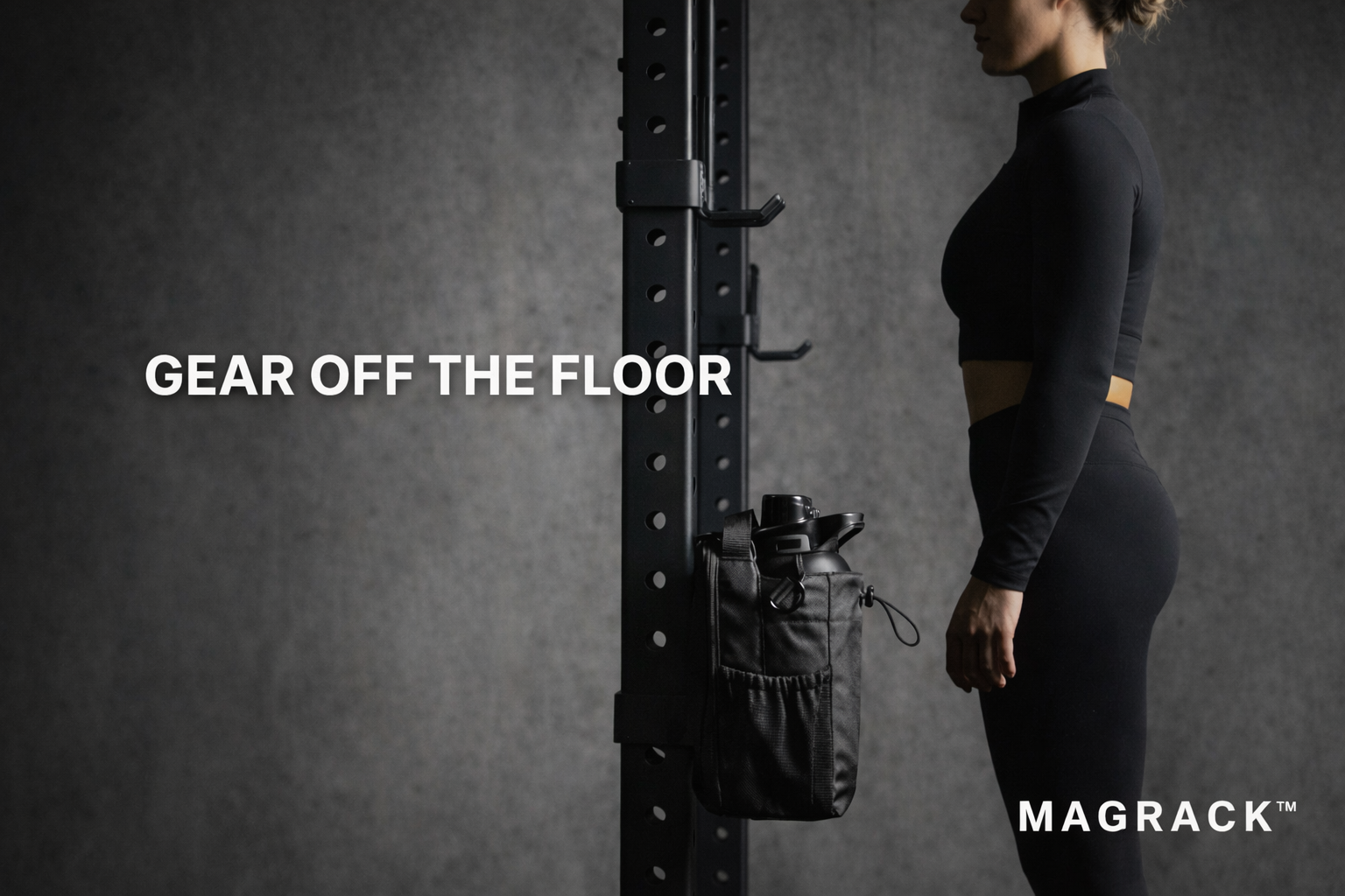 The magnetic bag that sticks to racks - clean, organised, always within reach.